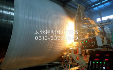 罐體碰焊就是用PPH螺旋擠出纏繞機組使PPH顆粒料加工成罐體成型的工藝。系統采用將PPH顆粒熱熔后擠出后再鋼制模具上纏繞成罐體的工藝。