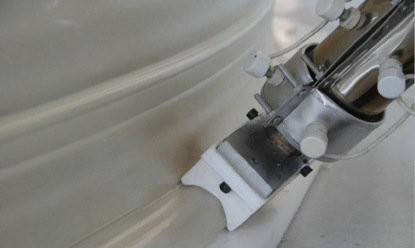 外部焊接就是用進口自動擠出焊接機組使儲罐應力 大部位實現大焊縫一次焊接成型的工藝。將與罐體性質相同的全新PPH顆粒料熱熔在大焊縫處,與罐底、罐體成一體。